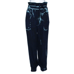 Louis Vuitton Navy Blue Printed Silk Jogger Pants M
