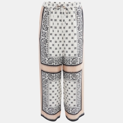 Roberto Cavalli Off White Printed Silk Patched Tapered Trousers M