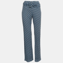 Prada Blue/Black Printed Jersey Belted Pants S