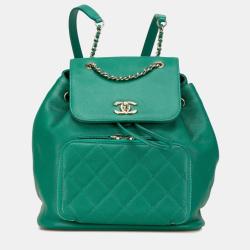 Chanel Matelasse Coco Mark Backpack In Green Caviar Leather
