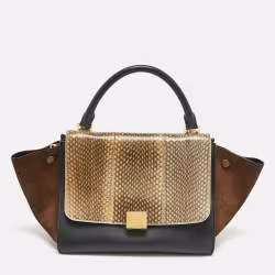 Celine Tricolor Leather and Snakeskin Small Trapeze Top Handle Bag