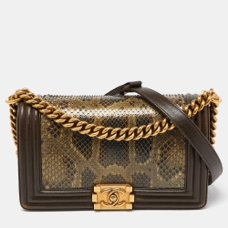 Chanel Olive Green Python and Leather Medium Boy Flap Bag