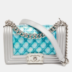 Chanel Silver/Blue PVC and Leather Small Water Boy Flap Bag