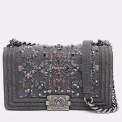 Chanel Grey Textured Suede Beads Embellishment Medium Boy Flap Bag