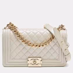 Chanel Pearl White Quilted Patent Leather Medium Boy Flap Bag