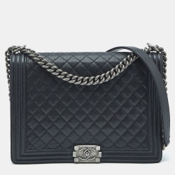 Chanel Black Quilted Caviar Leather Large Boy Flap Bag