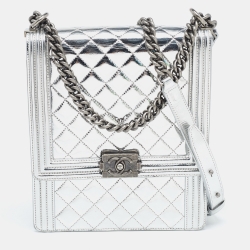 Chanel Silver Quilted Leather North South Boy Flap Bag