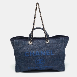 Chanel Deauville Large Navy Blue Denim Shopper Tote
