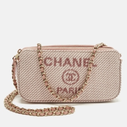 Chanel Deauville Double Zip Pink Fabric Chain Clutch