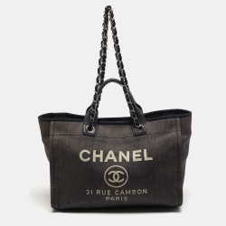 Chanel Black Canvas Large Deauville Tote Bag