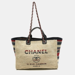 Chanel Beige Multicolor Canvas Deauville Shopper Tote