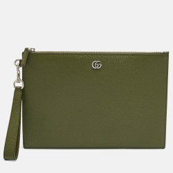 Gucci Fatigue Green Leather GG Marmont Pouch