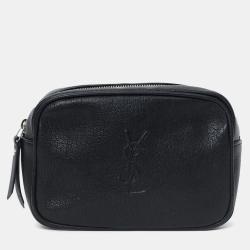Saint Laurent Black Leather Monogram Envelope Pouch Clutch