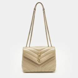 Saint Laurent Loulou Small Beige Matelassé Leather Shoulder Bag