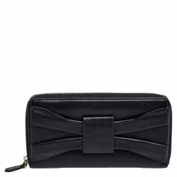Valentino Black Leather Pleated Bow Continental Wallet