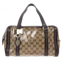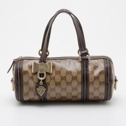 Gucci Brown/Beige GG Crystal Canvas and Suede Babouska Indy Boston Bag