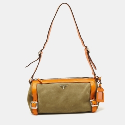 Prada Orange/Olive Green Suede and Leather Duffel Bag