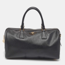 Prada Black Saffiano Lux Leather Boston Bag
