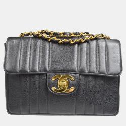 Chanel Black Calfskin Chevron Single Flap Shoulder Bag