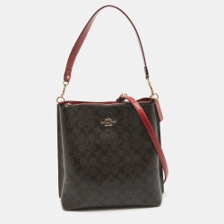 Coach Brown/Red Signature Coated Canvas and Leather Mollie Bucket Bag