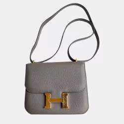 Hermes Tin Grey Epsom Leather Constance 19 Shoulder Bag