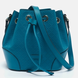 Gucci Deep Cobalt Bright Diamante Leather Drawstring Bucket Bag