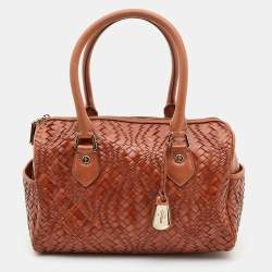 Cole Haan Beige/Gold Woven Canvas and Leather Satchel