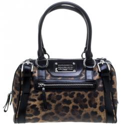 Dolce and Gabbana Brown Leopard Print Coated Canvas Miss Easy Way Satchel