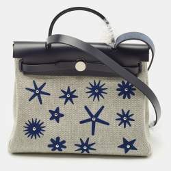 Hermes Vache Hunter/Toile Bleu Indigo/Etoupe Canvas and Leather Herbag Zip 31 Bag