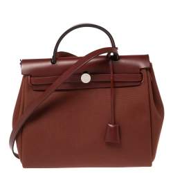 Hermes Rouge H/Fauve Canvas and Leather Herbag Zip 31 Bag