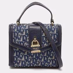 DKNY Blue Signature Canvas and Leather Trim Flap Top Handle Bag
