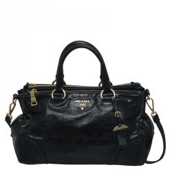 Prada Black Glazed Leather Double Zip Top Handle Bag