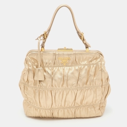 Prada Metallic Gold Leather Gaufre Frame Bag