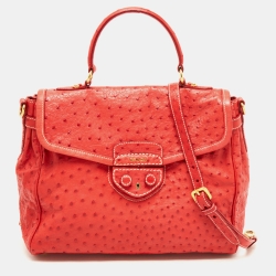 Prada Red Ostrich Pushlock Flap Top Handle Bag