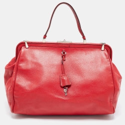 Prada Red Leather Spazzolato Frame Top Handle Bag