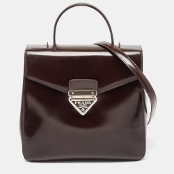 Prada Brown Leather Flap Top Handle Bag