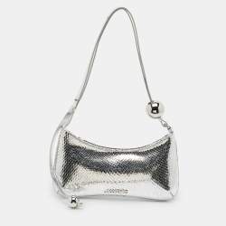 Jacquemus Silver Snakeskin Embossed Patent Leather Le Bisou Perle Shoulder Bag