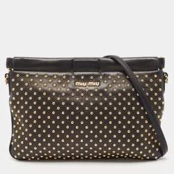 Miu Miu Black Matelasse Leather Crystal Embellished Turnlock Shoulder Bag