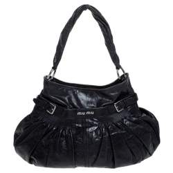 Miu Miu Black Leather Oversized Glazed Shoulder Bag