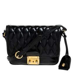 Miu Miu Black Matelasse Leather Turnlock Flap Hobo