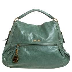 Miu Miu Dark Green Leather Pushlock Crossbody Bag