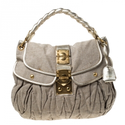 Miu Miu Silver/Gold Leather Madras Crossbody Bag
