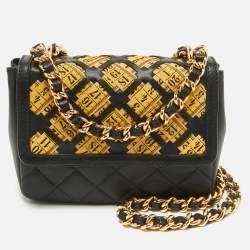Moschino Black Quilted Leather Trunlock Flap Shoulder Bag