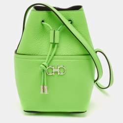 Salvatore Ferragamo Green Leather Mini Gancini Drawstring Bucket Bag