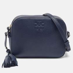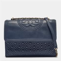 Tory Burch Navy Blue Leather Small Fleming Shoulder Bag