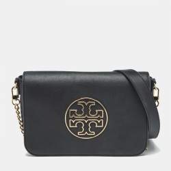 Tory Burch Black Leather Reva Flap Shoulder Bag