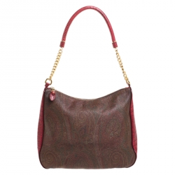 Etro Red/Brown Paisley Print and Croc Embossed Leather Hobo