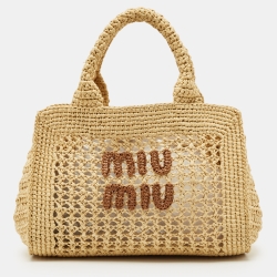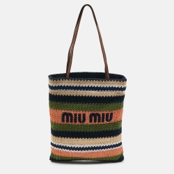 Miu Miu Multicolor Woven Raffia and Crochet Fabric Beach Tote