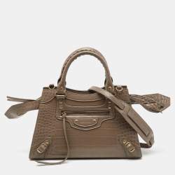 Balenciaga Green Croc Embossed Leather Mini Neo Classic City Tote