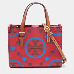 Tory Burch Red/Multicolor T Monogram Leather Mini Square Tote
